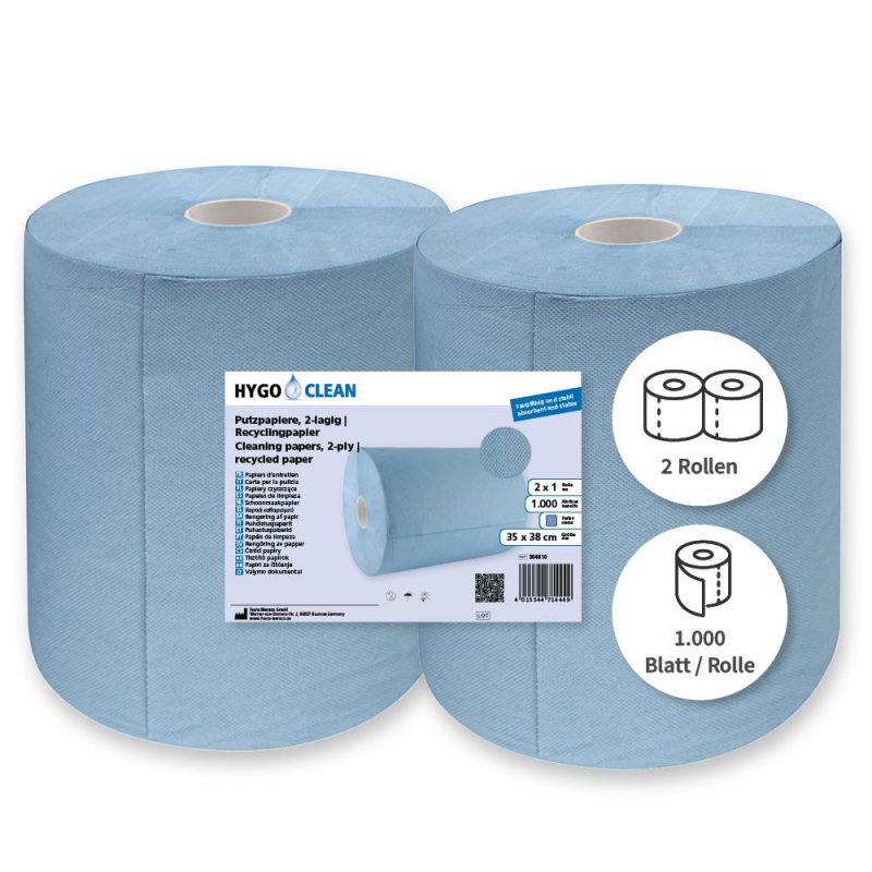 Hygoclean Putzpapiere, 2-lagig | Recyclingpapier, 38 cm breit 2 Rollen im Karton
