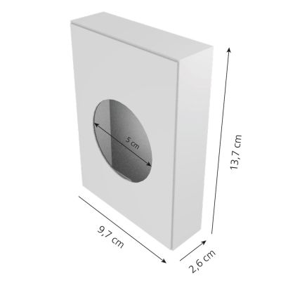 Er ist aus weißem PP und wird an der Wand befestigt.